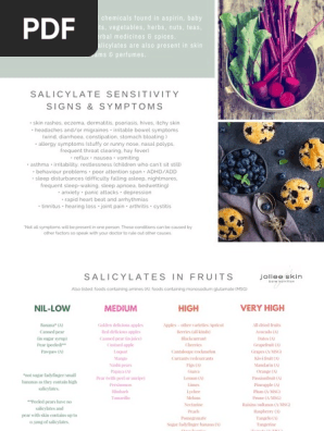 In addition to many fruits and vegetables, salicylates are also highly prevalent in commercial bath and beauty products, and are easily absorbed through the skin.